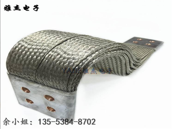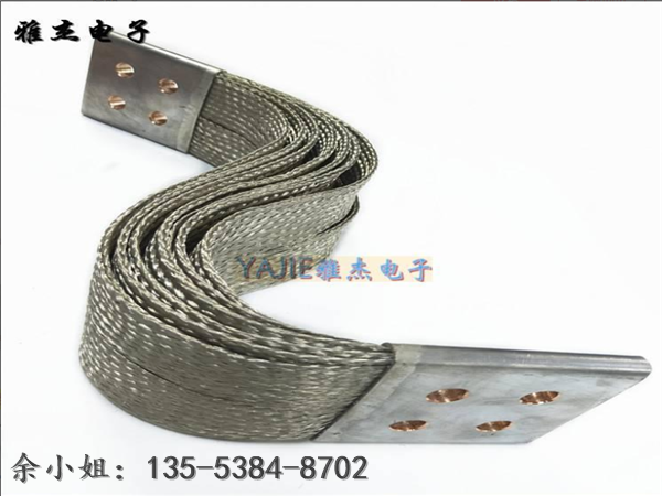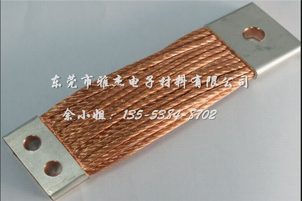 导线材料:铜编织线、铜编织带、镀锡铜编织线、镀锡铜编织带、铜绞线。铜编织带是用无氧铜丝编织,线经0.10mm,0.12mm,0.15mm单丝,根据客户要求,柔软度,通电强度等特制而成。