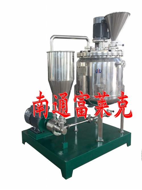 ①、固液虹吸混合泵与立式乳化机组合,使固体粉末瞬间均质混合于液体之中,通过循环促使粉体物料在线封闭情况下同步完成混合均质、分散乳化、破碎溶解等多种工艺中,提高了生产效率;