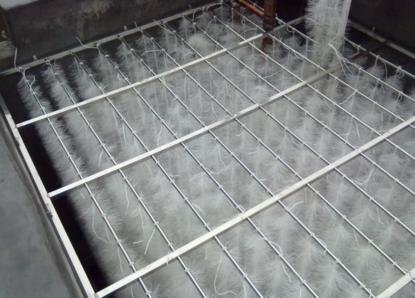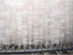 弹性填料筛选用聚烯烃类和聚酰胺中的几种耐腐、耐温、耐老化的品种,吸附、抗热氧等助剂,采用特殊的拉丝、丝条制毛工艺,将丝条穿插同着在耐腐的绳上。由于选材和工艺配方精良,刚柔适度,使丝条呈立体均匀排列辐射状态,制成了悬挂式立体弹性填料的单体.填料在区域内能立体匀舒展满布,使气、水、生物膜得到充分混渗接触