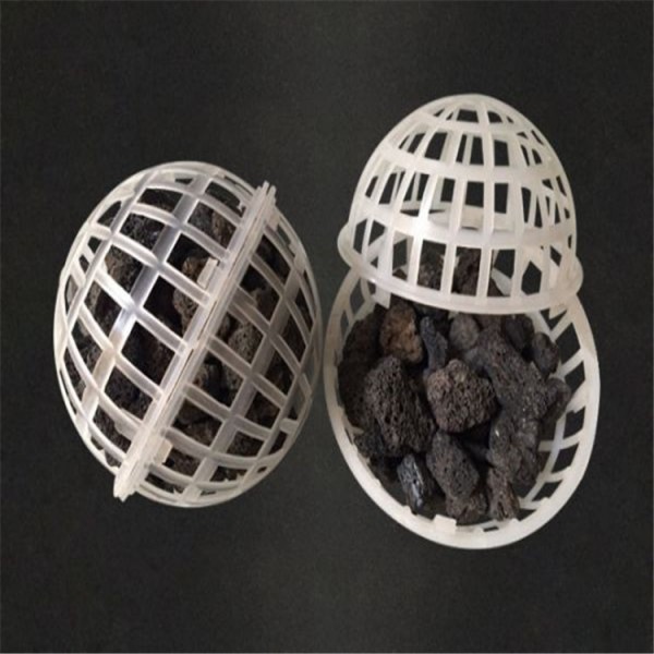 悬浮球填料又称多孔旋转球形悬浮填料,是在众多污水处理填料的基础上开发的新产品。主要起生物膜载体的作用,同时兼有截留悬浮物的作用,具有生物附着力强、比表面积大、孔隙率高、化学和生物稳定性好、经久耐用、不溶出有害物、不引起二次污染、亲水性能强等特点,是任何软性、半软性、组合弹性填料无法实现的。在污水处理