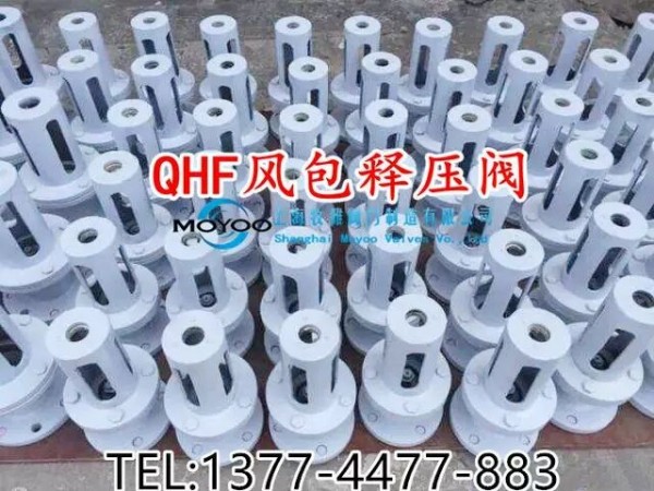风包释压阀QHF用途:风包释压阀用于地面或井下空气压缩机系统中,安装在风包出口管路正对气流方向上,释压阀的口径不得小于出风管的直径,释放压力应为空气压缩机最高工作压力的1.2-1.4倍,起安全保护作用。