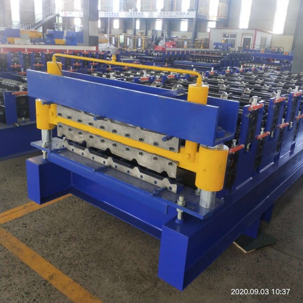 840-900型双层彩瓦压型设备采用新双层设计,一机两用,占地面积小,运输方便,节约彩钢卷占地用量,节约成本。