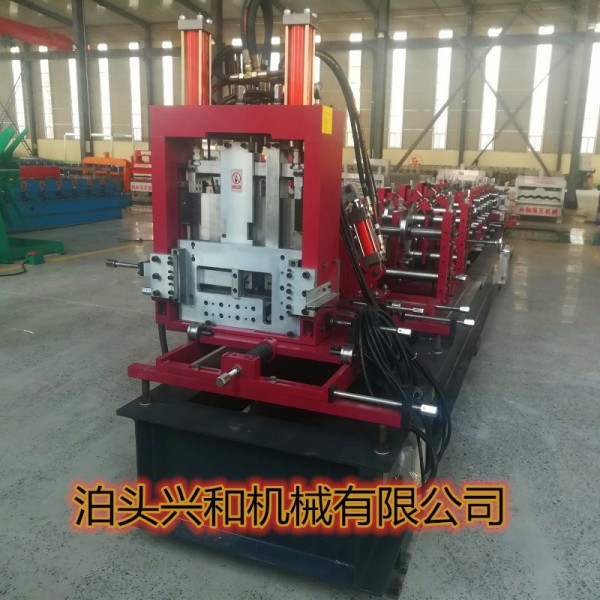 全自动换型cz型钢檩条生产设备是一套可生产多种规格CZ型檩条成品的单卷成型机组。自动CZ型钢设备主要由被动装料架、整平装置、前剪切装置、成型主机、自动冲孔装置、无极成型后剪切装置、液压站、计算机控制系统等。