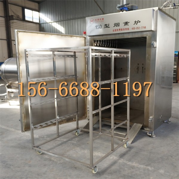 中小型红肠熏蒸机听我给您报个菜名咳咳熏鸡,熏鸭,熏鸽,烤肠,烤鸡,熏鱼,烤鸭,豆腐干,腊肉,腊肠,红肠,香肠,松仁小肚,粉肠,蒜蓉肠,猪头肉,鸡腿,牛肉干,家禽,水产品哈哈我厉不厉害,还有更厉害的呢,咱家的设备加工这些食品那都不成问题烟熏,烘干,上色蒸煮一次成型,烟熏色泽好,口感更佳,质量保证,技术优良,操作方便,经过烟熏后食品的颜色好看,还有一种烟熏后的香让人感觉香而不腻,也能达到环保的效果彻底代替了传统的烟熏炉方法,节省了人工,提高了工作效率,更增强了食品的口感及弹性。心动不如行动快来打订购吧.
