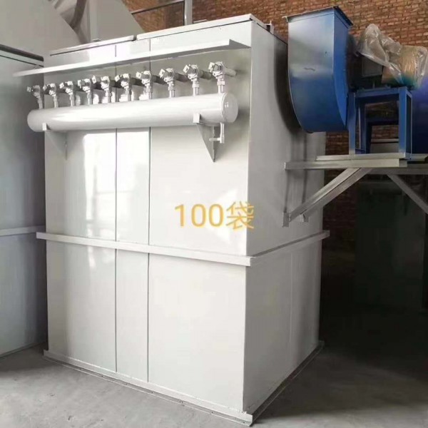 低压脉冲袋式除尘器的气体净化方式为外滤式,含尘气体由导流管进入各单元过滤室,由于设计中滤袋底离进风口上口垂直距离有足够、合理的气流通过适当导流和自然流向分布,达到整个过滤室内空气分布均匀,含尘气体中的颗粒粉尘通过自然沉降分离后直接落入灰斗,其余粉尘在导流系统的引导下,随气流进入中箱体过滤区,吸附在滤袋外表面。过滤后的洁净气体透过滤袋经上箱体、排风管排出。