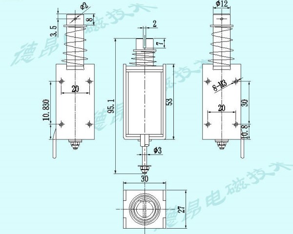产品原理:当线圈得电后,产生磁能,将中间的可动铁芯磁化然后产生一个往前或往后的动作。