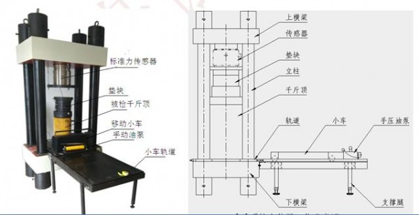 WAQ-10000KN千斤顶试验机主要有可移动横梁、丝杠、工作台、移动小车、遥控盒等组成。