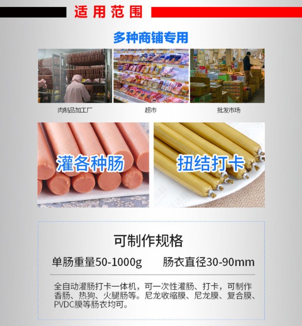 全套红肠生产线-红肠加工设备机器 采用优质(铸铁件)或不锈钢制造,对加工物料无污染,符合食品卫生标准。 刀具经特殊热处理,耐磨性能优越,使用寿命长。该机操作简单、拆卸组装方便,容易清洗、加工产品范围广,物料加工后能很好地保持其原有的各种营养成分,保鲜效果良好。刀具可根据实际使用要求随意进行调节或更换。