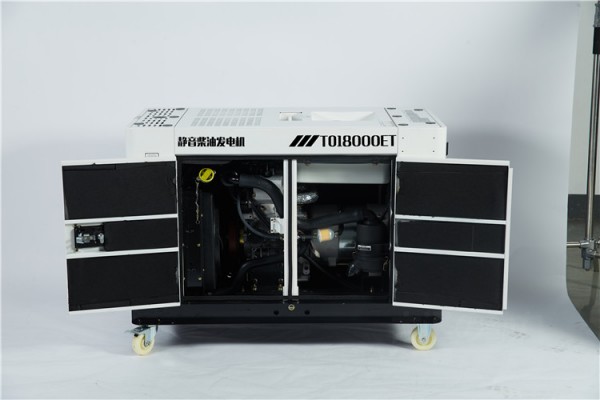 静音式发电机组,是相对于开放式发电机组而言,在其基础上增加了一个装置,使发电机有隔音和防雨功能。利用外壳将开放式发电机组封闭起来,并在外壳内壁上粘附隔音材料。同时,也要留有进排风口,让发电机组吸入空气和散热。