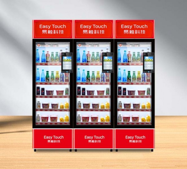 “易触科技”已经成功推出饮料机、综合机、低温乳品机、云台机(售卖盒饭、果蔬、怕摔等商品)、格子柜、组合机(自助微超)等多种规格型号的自动售货设备。