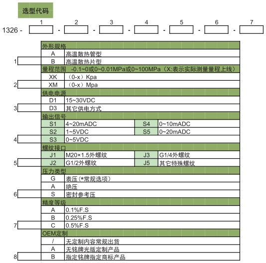 表压、绝压、密封参考压型 |
