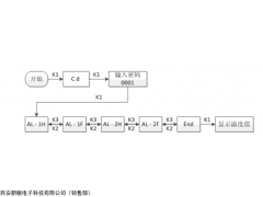 AL1H:继电器1的吸合值(按下K1,当前显示的是默认值,若要修改此值,再次按下K1进入修改界面,按下K2按键从0-9累加,按下K3按键进行移位,修改完成后,按下K1保存,保存后自动跳入下一菜单AL1F。若不修改,按下K3直接进入下一菜单AL1F。若所设置的温度为负值(系统默认为正值),则长按K2或K3键约1.5秒钟,数值自动切换为负值,由负值切换正值亦如此,修改数值方法同上;以下菜单正负数切换同理)