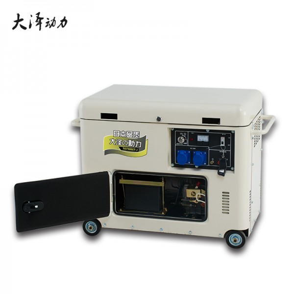 移动式10kw柴油发电机体积减小、重量减轻,内部结构得到改善。这样就提升了柴油发电机的安全性能,,大泽动力还在柴油发电机内部安装应急装置,所以柴油发电机可以安全有效的保障操作者的安全。