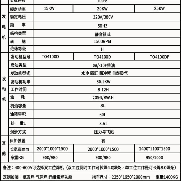 道路应急250安柴油发电电焊一体机大泽动力发电电焊机交流焊机和直流焊机应用领域的区别主要是交流焊机一般都用在钢结构制造单位或一般通用机械或农业机械制造单位。直流主要用在制造压力容器锅炉,管道,或重要结构制。
