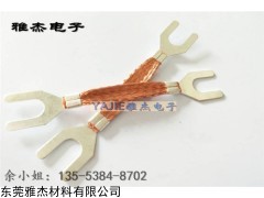 法兰静电跨接线材质一般有纯铜和铜包铝等,显然纯铜材质要比铜包铝的好。纯铜又分为紫铜和镀锡铜,两者除了镀锡铜比紫铜耐氧化性能好一点之外,其他用途和特征是一样的,纯铜是裸铜本色,镀锡铜则为银白色。若用于一般防静电场所纯铜的跨接线4平方,6平方和10平方就够用的。