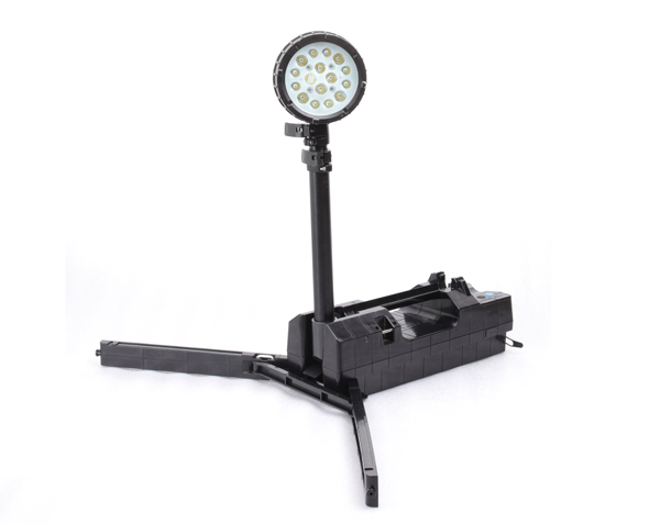 FW6117 LED防爆轻便移动灯是一款大功率探照灯,灯头是由50W高效LED灯头组成 ,相当于卤素灯的600W,并配置泛光灯头为大面积照射;可根据现场需要将灯头在灯盘上分别朝一个方向照明或2个灯头向同一方向照明,也可将每个灯头单独做上下、左右大角度调节旋转实现360°照明;