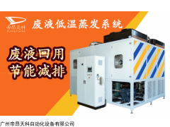 帝昂天科切削液废水处理系统是一种高真空超低温的蒸发设备,蒸发浓缩工业产生的废水,通过对废水的在线浓缩处理,实现再生水回收再利用或检测达标后排放。设备可处理各种废切削液、废脱模剂、水性清洗剂废水等废液。