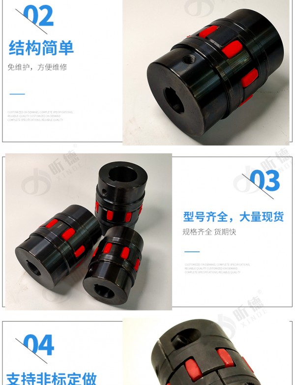 公司专业从事生产及销售各类联轴器、胀套、扭力限制器、十字万向传动轴、十字型小万向节、安全离合器、超越离合器、阻尼器等传动件产品,并具有非标联轴器的开发和设计能力及进口件的国产转换,产品品种齐全、规格多、最能及时满足客户的所需所求。产品广泛适用于冶金、化工、机械、车船、电子、造纸、食品等工业部门。主要生产: 梅花联轴器 十字万向节 球铰联轴器 弹性膜片联轴器 鼓形齿式联轴器 星型联轴器 滚子链式联轴器 轮胎式联轴器 十字滑块联轴器 凸缘联轴器 蛇形弹簧联轴器 波纹管联轴器 金属螺旋联轴器 编码器联轴器 弹性柱销联轴器 胀紧联结套 各类扭矩限制器 十字轴式万向联轴器 万向球笼式 单向超越离合器