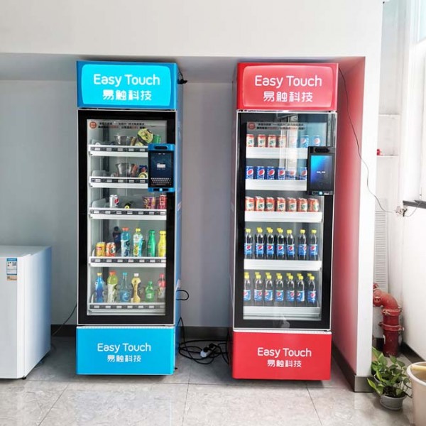 “易触科技”已经成功推出饮料机、综合机、低温乳品机、云台机(售卖盒饭、果蔬、怕摔等商品)、格子柜、组合机(自助微超)等多种规格型号的自动售货设备。
