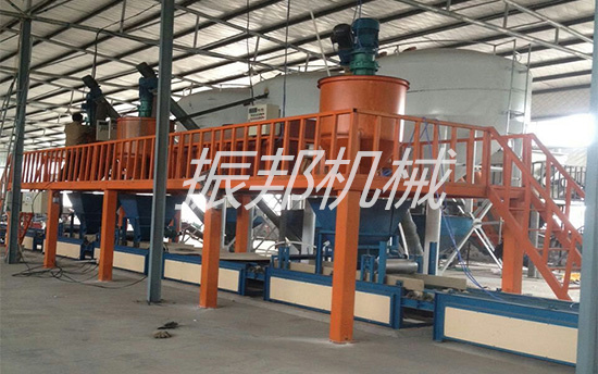 产品特点:不变形,阻燃性好,结构简单、安装方便,造价较低,整体结构稳定 。现浇混凝土保温体系,此生产线有全自动搅拌系统、自动制板机、自动切割锯、自动码垛系统和群钻五部分组成。