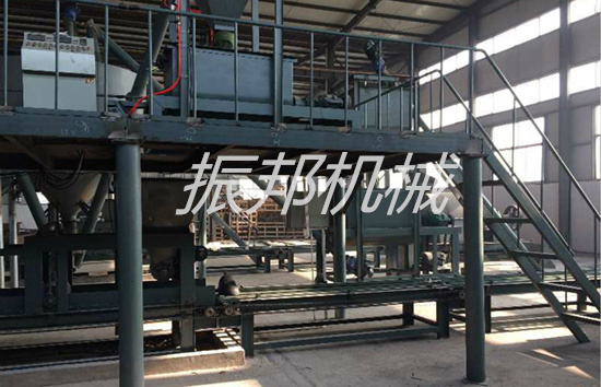本机采用自动化多道辊压、布网、铺无纺布制板,一次成型,制板速度快,板材料光滑平整,规格任意调整,厚薄均匀,本机在砂浆状态下,上下按顺序布料布网,同机实现复合制作与EPS聚苯板或XPS挤塑板复合一次性成型,并在复合板里面形成砂浆网状立体联接结构。由于采用的工艺独特,不仅是生产效率成倍提高,制板成本大幅降低,而且提高了保温板的综合质量,机械强度和面层的粘结牢度,从根本上克服了传统聚苯板和挤塑板现场施工造成的重复劳动复杂工序、及粘结不牢固、施工成本高的缺点。