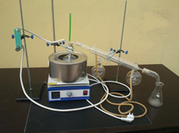 ③开始加热烧瓶,调节加热温度,一般设定恒温油浴从从、开始至三氯乙烯以滴态被流出来时即可设定 155——165℃。