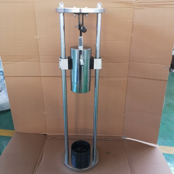 4、倒料:将量筒中集料倒入机器底座上的金属杯中,并用捣实棒在它上面单独捣实25次,以便压实。