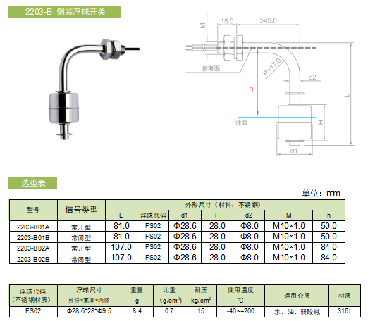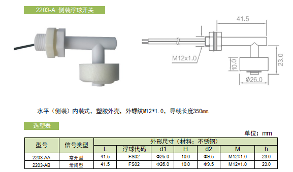 2203-A侧装浮球开关