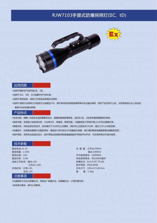 油田、冶金、铁路、电业、石化企业等各种易燃易爆场所的ⅡC类T1-T6组1区、2区、、水下及其他工作现场提供移动照明。