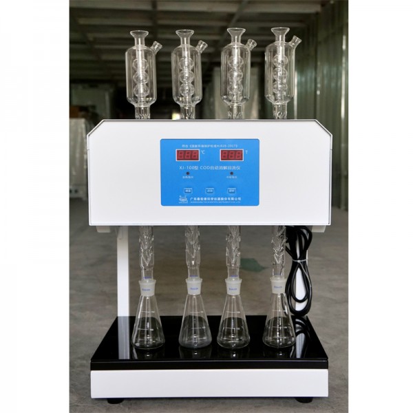 COD自动消解回流仪(XJ-100自动消解回流仪)主要由机身、回流管、风扇、电炉板等4大部分组成,采用微机技术进行定时控制加热电炉板和风扇,可对6个锥形瓶回流装置同时进行加热。