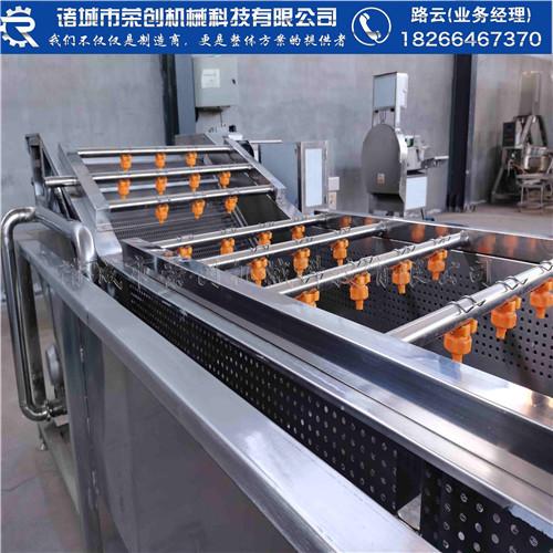 中药材清洗机 中草药气泡喷淋清洗设备通过高压旋气泵使水产生翻滚、“欢娱”,使物料表面的尘土、泥沙迅速脱离主体,通过不锈钢网带,将清洗后的物料输入到下道工序,在出料端上部装有多个扇形喷嘴,对蔬菜进行二次清洗,抵达良好的清洗作用。全体选用不锈钢制作,用户可根据工艺要求恣意调整网带速度,从而使被清洗物得到清洗。产品选用国标不锈钢制造而成、坚固耐用、设备质料不会受损害,从而抵达洗洁净高、节约劳力、节水、设备功用安稳,可靠等作用。自动连续清洗,被清洗物洁净高出人工常规洗法三倍以上。本机选用高压水流和气泡产生装置冲击被清洗物体表面,气泡 在与物体接触时分裂产生的,会对被清洗物体表面起到一个冲击和冲洗的作用,冲洗被清洗物体表面,去除产品表面农残的功效,将被清洗物体清洗洁净。一同可参加适量的化工水剂,进行固色。漂浮物可以从溢流槽溢出,沉淀物从排污口排出,以抵达清洗的目的;输送部分选用SUS304不锈钢网带,运转平稳、运用寿命长等特色,契合食品卫生要求。操作简单,修理便利、连线便利。气泡清洗机与家用果蔬清洗机的功效在原理上是差不多的。清洗在蔬菜加工中很重要, 清洗过的蔬菜既或许是产品, 也或许作为蔬菜深加工中的初级产品,清洗作业对于蔬菜加工品的质量至关重要。蔬菜通过清洗, 可以去除表面污物、微生物及残留yaowu。清洗前, 蔬菜表面上的微生物数量在104~108g之间 , 有些叶菜类和根菜类蔬菜由于粘附泥土, 微生物数量更高。通过正确的清洗工艺,微生物数量会降低到其初始数量的2.5-5左右。蔬菜清洗作用取决于清洗时间、清洗温度、机械力的作用方法以及清洗液体的pH 值、硬度和矿物质含量等要素的影响。蔬菜的清洗除通过机械力作用进行外, 增加表面活性物质或清洗剂, 也可以大大提高清洗作用。