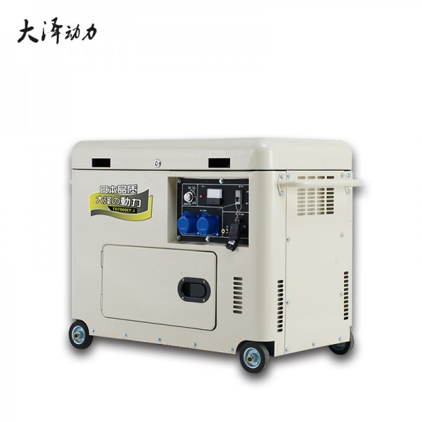 大泽5kw静音柴油发电机 油发电机组是一种独立的发电设备,系指以柴油等为燃料,以柴油机为原动机带动发电机发电的动力机械。整套机组一般由柴油机、发电机、控制箱、燃油箱、起动和控制用蓄电瓶、保护装置、应急柜等部件组成。整体可以固定在基础上,定位使用,亦可装在拖车上,供移动使用。 柴油发电机组属非连续运行发电设备,若连续运行过12h,其输出功率将低于额定功率约90%。 尽管柴油发电机组的功率较低,但由于其体积小、灵活、轻便、配套齐全,便于操作和维护,所以广泛应用于矿山、铁路、野外工地、道路交通维护、以及工厂、企业、医院等部门,作为备用电源或临时电源。同时这种小型的发电机组也可以作为小型的移动电站使用,成为很多企业的后备电源使用。