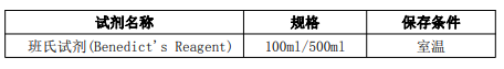 产品简介:班氏试剂(Benedict's Reagent)又称本氏液、本尼迪克特试剂、本尼迪克试剂、本尼迪克试液或本尼迪特试剂,是一种浅蓝色化学试剂。其命名来自于一位美国化学家斯坦利•本尼迪克。班氏试剂在配制过程中,当把硫酸铜溶液倒入由柠檬酸钠和无水碳酸钠配制的溶液中时, 硫酸铜与碳酸钠和柠檬酸钠相遇,能产生出一种可溶性的又能离解出 Cu 2+的可溶性络盐,即柠檬酸钠此时能防止氢氧化铜沉淀的形成,做了一种亲水性掩蔽络合物形成剂。当利用班氏试剂测定还原性糖时,还原性糖在这种碱性溶液中能将 Cu2+ 还原为 Cu+ ,Cu+再不 OH-合成黄色的 CuOH,加热后 CuOH 即变成砖红色的氧化亚铜(Cu2O)沉淀。尚宝生物 Benedict's Reagent 主要由碳酸钠、柠檬酸钠、硫酸铜配等组成,来检测还原性糖,包括除蔗糖之外基本上所有的单糖和双糖,常用于尿糖的鉴定。该试剂仅用于科研领域,不宜用于临床诊断或其他用途。