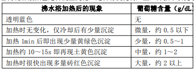 操作步骤(仅供参考): 1. 在试管中加入 1ml Benedict's Reagent,加热到沸腾,如不变色,则可使用。 2. 在试管中滴入 2 滴(约 0.1ml)新鲜澄清的尿液,充分摇匀。 3. 加热上述混合液到沸腾,并持续 2~3min,冷却后观察结果。 4. 观察试管内混合液颜色是否发生变化,是否有沉淀物产生,并按下表提示作出判断: