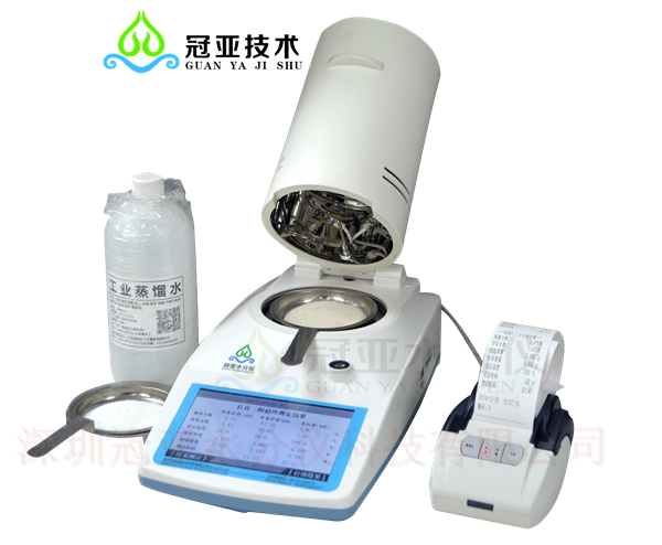 CS-001系列供应调味粉水分测定仪优势/采购/选择是由深圳市冠亚技术科技有限公司研发生产,采用国际烘箱干燥法原理,采用高效率的烘干加热器加热干燥的方式直接测量水分,遵循热重法原理,样品通过吸收加热源能量并对样品进行快速、均匀的加热,样品的水份持续不断的被烘干排除易挥发份,与此同时内置称重系统在水分分析的起点和终点测量样品重量。整个测量过程,仪器全自动的实时显示测量结果:样品重量、含水量、测定时间、加热温度等;测定结果与烘箱法水分测定具有良好的一致性,工作效率却远远高于烘箱法水分测定,一般样品只需要几分钟即可测量完毕,因此受到广大用户的青睐与好评。