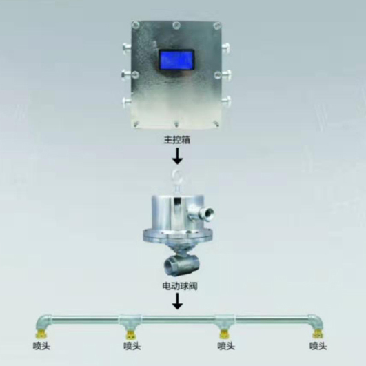 制器,ZPC-S型喷雾降尘装置用声控传感器以及执行器矿用防爆电动球阀等组成,该装置利用声音控制洒水降尘,适用于煤矿井下炮采工作面,矿用声控喷雾洒水降尘装置主控箱,当监测到放