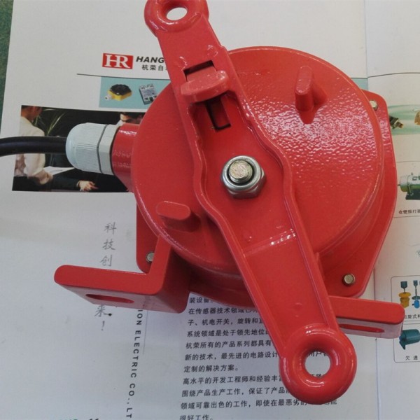 当胶带运输机现场紧急事故时,在沿线任意位置牵动系在挂耳上的钢丝绳,迫使机内凸轮转动而驱动微机开关动作,发出停机信号,达到停机效果,防止事故的扩大。达到保障安全生产目的