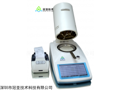 CS-001系列毛木耳水分测量仪怎么调由深圳市冠亚技术科技有限公司冠亚技术产品,能够快速测定浆料、粉末、膏状,纤维,片材、颗粒等用来测量任何物料中各种形态样品的水分含量,仪器根据热解重量原理,在水分快速检测领域中不仅提供一种快速烘干结构的水分议,并取得一种新型水分仪加热处理系统设备证书。测试开始水分测定仪测定样品重量,然后样品由内置的卤素干燥装置和水分蒸发器快速加热,在干燥过程中,仪器连续测定样品重量并显示丢失的水分。显示部分采用了高分辨率的7寸液晶大屏幕,可直接通过全屏触控的模式在液晶屏上直接进行测试参数、条件设定等,实现了无需人员培训,人员看护、维护实验过程,高科技自动模式;看说明书或者产品操作流程即可全面掌握并操作,同时根据说明书上的提示,即可简单处理设备工作中出现的各类现象。