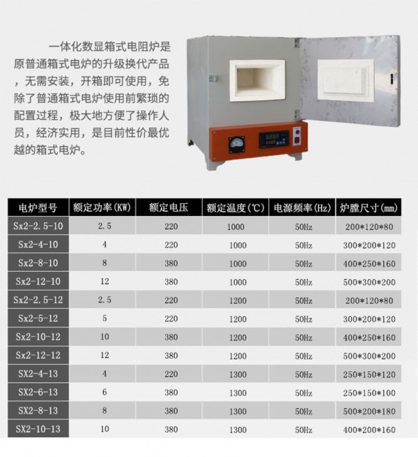 SX2-5-12一体化箱式电阻炉【技术参数】