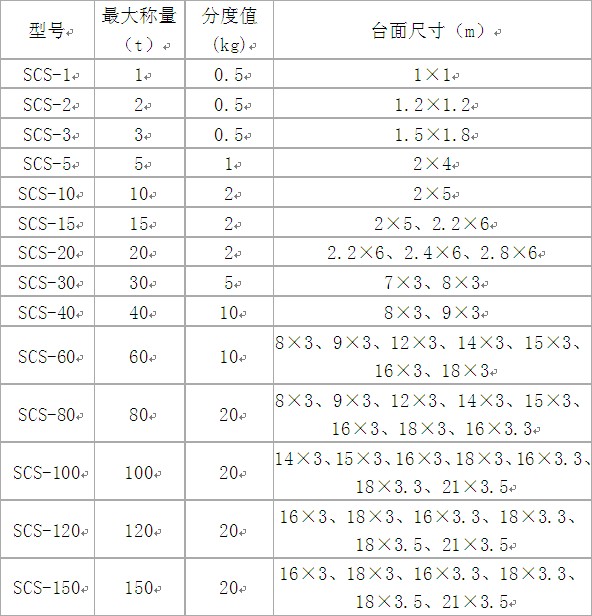 SCS系列汽车衡主要技术指标