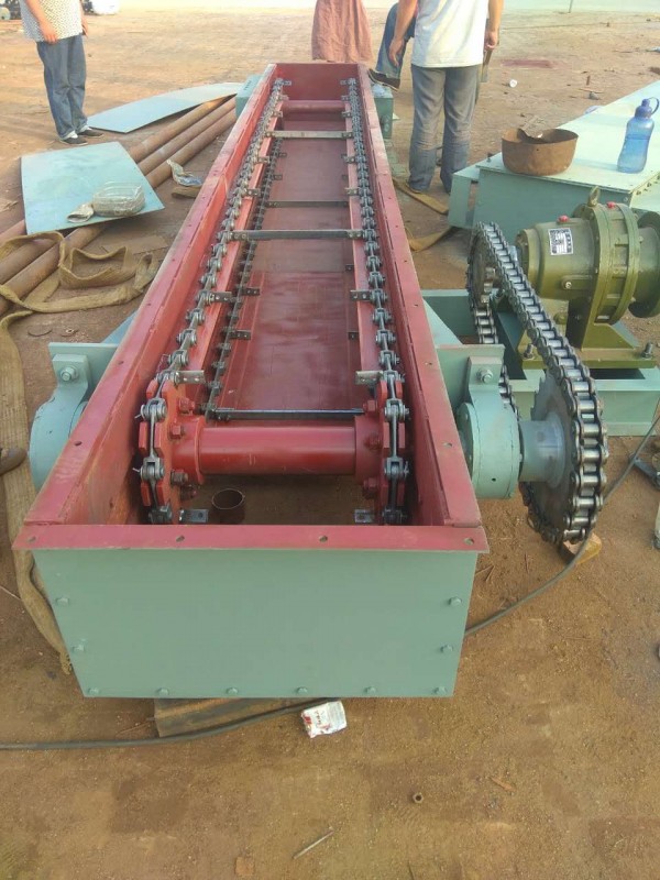 散状物料颗粒间具有其内摩擦力,物料相对机 是一种用于水平或倾斜布置输送粉状、粒状物料的机械产品壳又有外摩擦力,它在机槽内受到输送链在其运动方向的拉力,使其内部压力增加,颗粒之间的内摩擦力增大,在水平输送时,这种内摩擦力保证了料层之间的稳定状态,形成了连续的整体流动。当料层之间的内摩擦力大于物料与槽壁之间的外摩擦力时,物料就随着输送链一起向前运动,当料层高度与机槽宽度的比值满足一定条件时,料流是稳定的。而当料层低于刮板高度和料层高度不均匀时料流的整体性和稳定性被破坏,但此时物料是被刮板推送前进。