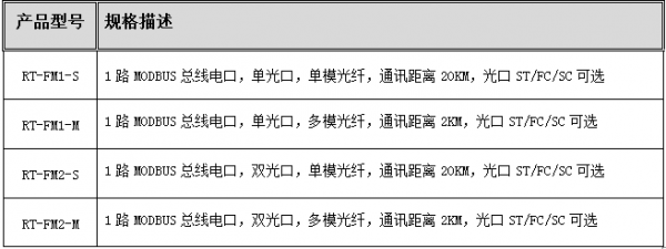 本产品是一款工业级MODBUS现场总线光纤中继器,符合MODBUS协议,数据全透明传输,速率自适应,支持单/双光口网络结构。RT-FM1支持一路总线数据接口,一路光纤接口,适用于点对点通讯结构;RT-FM2支持一路总线数据接口,二路光纤接口,适用于点对点、星型/级联拓扑通讯结构。