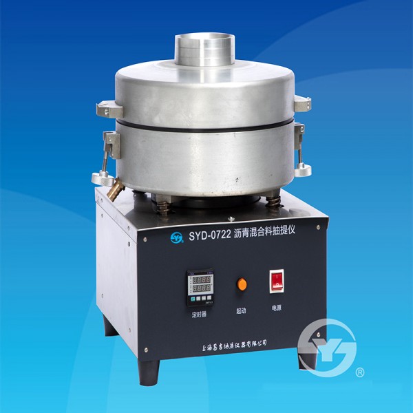 SYD-0722型沥青混合料抽提仪、电脑数显自控高速抽提仪是根据交通部标准JTG E20-2011《公路工程沥青及沥青混合料试验规程》中的T 0722-1993《沥青混合料中沥青含量试验(离心分离法)》所规定的要求设计制造的,采用离心分离法测定粘稠石油沥青拌制的沥青混合料中的沥青含量(或油石比),适合于道路工程的施工监理、沥青混合料生产厂家和施工单位的现场快速检测。