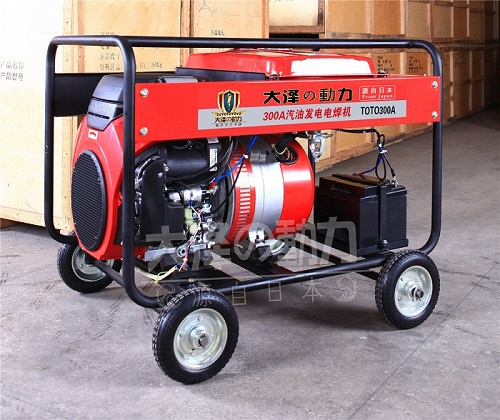 300A双缸汽油发电电焊机价格 供应大泽动力汽油发电电焊.体机,机器重量轻,体积小,便于移动,可以生产功率比较大且体积很小,常态焊8.0以内的焊条,体积重量小;适合移动不方便设备的地区使用;焊接质量较好。