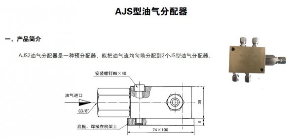 厂家特惠AJS3-12/10 油气分配器 质保一年,无锡海万AJS、JS、TRL、FVTLG系列油气分配器,分配器生产厂家。本公司产品质量保证,价格优惠,品种齐全,销往全国各地。