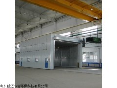 整体移动式喷漆房排风方式常见的有两种: 一种是侧进风(或房顶部)、侧排风。这种排风设计管道在房体之外,长度与整体移动房体的行程相同。外侧排风管道上设若干个电动风阀,而在房体侧面设置若干个喷漆或打磨工位,并在此处通过伸缩汽缸实现与排风管道的自动对接。漆雾收集采用玻纤地棉过滤,过滤棉框嵌入喷漆房墙体的排风一侧,而另一侧墙体或者房顶设置进风过滤系统。 另外一种排风方式是上进风、下排风。这种设计为地沟排风,漆雾废气通过地沟引向漆雾处理器,干式或者湿式漆雾处理设备都可以。漆雾处理器可设置在不影响其他工作的任意位置。主体地沟的长度应与房体的行程相同,地沟上面封闭,可设置电动风阀,按照工作的实际情况打开或关闭风阀。也可以排风口上面设置格栅,并设有密封门,房体行走到那个工位,就把对应的排风口打开。采用地沟方式排风,进风过滤系统设置在房顶。整体移动喷漆房 定制尺寸价格及配置