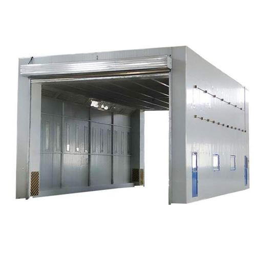 整体移动式喷漆房主要应用于大型工件的打磨或喷漆工作中,方便收集工作中产生的粉尘或废气。在一般情况下每套房体设设置有2-3个排风净化工位,哪个工位上的工件需要喷漆时,房体则行走移动到那个工位,其他工位可以继续打磨工作,待房体内的工件喷漆完毕后,再控制移动房体行走到打磨完毕的工件工位,如此设计可以实现大型工件的不间断连续喷漆工作。房体为钢结构构造,房体立柱下面设置有两台电动驱动行走机构,行走机构沿地面轨道行走。移动房体两端设置有电动卷帘大门,房体行走时,大门升起,待到达指置时,大门降落关闭。大门与行走机构由电气控制部分连锁控制,大门完全升起后,房体才可移动行走。整体移动喷漆房 定制尺寸价格及配置