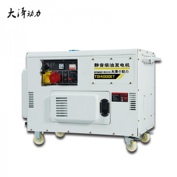 10kw静音柴油发电机低噪音式 整套机组一般由柴油机、发电机、控制箱、燃油箱、起动和控制用蓄电瓶、保护装置、应急柜等部件组成。现在柴油发电机都在向着全自动柴油发电机的方向在发展,当然其中大泽动力也不会落后于人,在全自动柴油发电机上也取得了相当好的成绩,大泽动力全自动柴油发电机组主要运用于国防、邮电通讯、医院、高层建筑、商厦、工矿企业、油田、公路、动力和照明常用或应急电源领域采用新型高压喷头加上设计合理的喷油器,使得燃油过程得到优化,从而达到低油耗和低排放的效果。大泽柴油发电机还采用了多项新型技术,使得柴油发电机更加难用、耐磨、密封性、寿命等等都得延长。