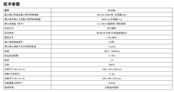 FC2706多功能通用低速离心机技术参数