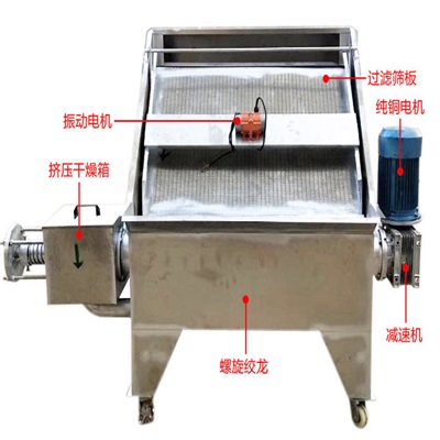 斜筛式分离机采用螺旋挤压方式连续工作的固液分离机,适用于分离固体颗粒为0.3mm以上,含水率90%以上的物料。特别适用于养殖场的牛粪、猪粪、鸡粪等畜禽类,秸秆工程等粗纤维的有机废弃物。脱离分离为液态有机肥和固态有机肥。经斜筛式分离机分离后的沼渣含水率大大降低,减少了沼渣的晾晒时间并降低了烘干费用。
